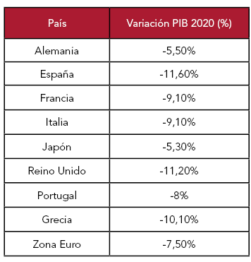 De acuerdo con la Organización para la Cooperación y el Desarrollo Económico (OCDE), la economía mundial prevé cerrar con descensos en el PIB combinado de aproximadamente un 4,2%. En este sentido, se esperaba un mayor deterioro del finalmente registrado: de en torno a un -7%, debido a las nuevas oleadas en todo el planeta, con las consiguientes interrupciones de la actividad económica. Sin embargo, la esperanza de contar con una vacuna efectiva a principios del nuevo ejercicio ha acabado mitigando los efectos, así como la confianza en una pronta reapertura de dicha actividad en su totalidad.