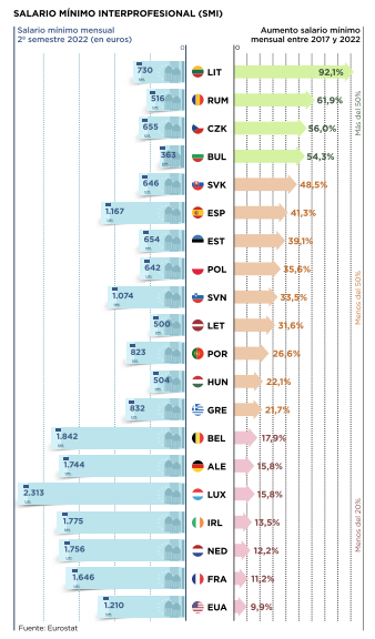 España es la economía desarrollada que más ha subido el SMI desde 2017, un 41,3%.