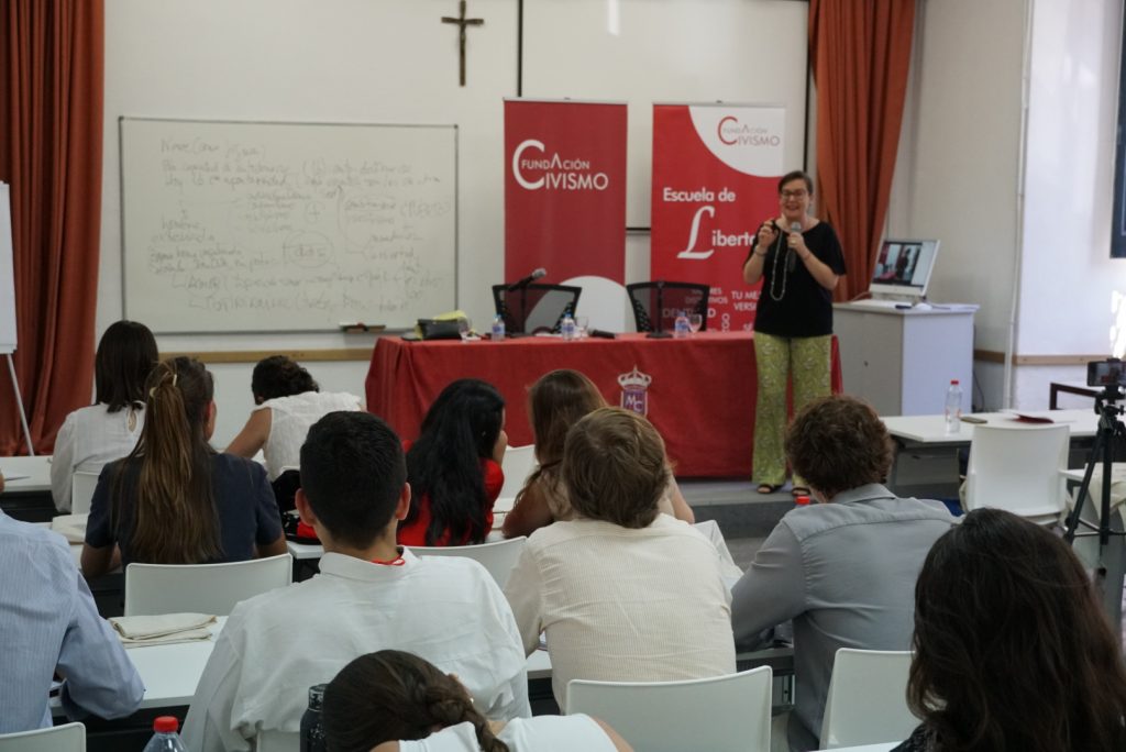 La V Edición de la Escuela de Libertad de la Fundación Civismo ha concluido con gran éxito, consolidándose como un programa formativo esencial para fomentar la adquisición de criterio entre los universitarios. Este curso de verano, celebrado del 23 al 28 de junio en el Real Centro Universitario Escorial-María Cristina, ha contado con la participación de 32 jóvenes provenientes de 11 universidades diferentes.
